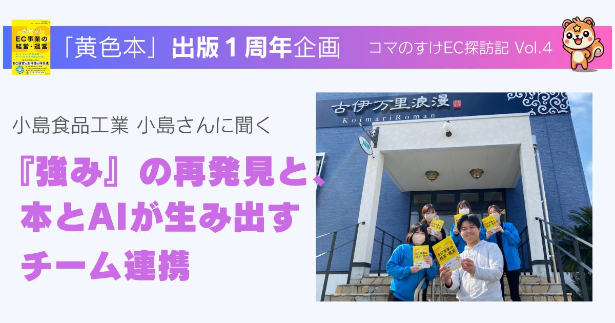 お客様の声2025年11月11日「EC10年やったけど、まだまだ伸びしろがあった」—創業123年、小島食品工業が実践する『強み』の再発見と、本とAIが生み出すチーム連携【黄色本 出版1周年記念 ★ EC探訪記vol.4】